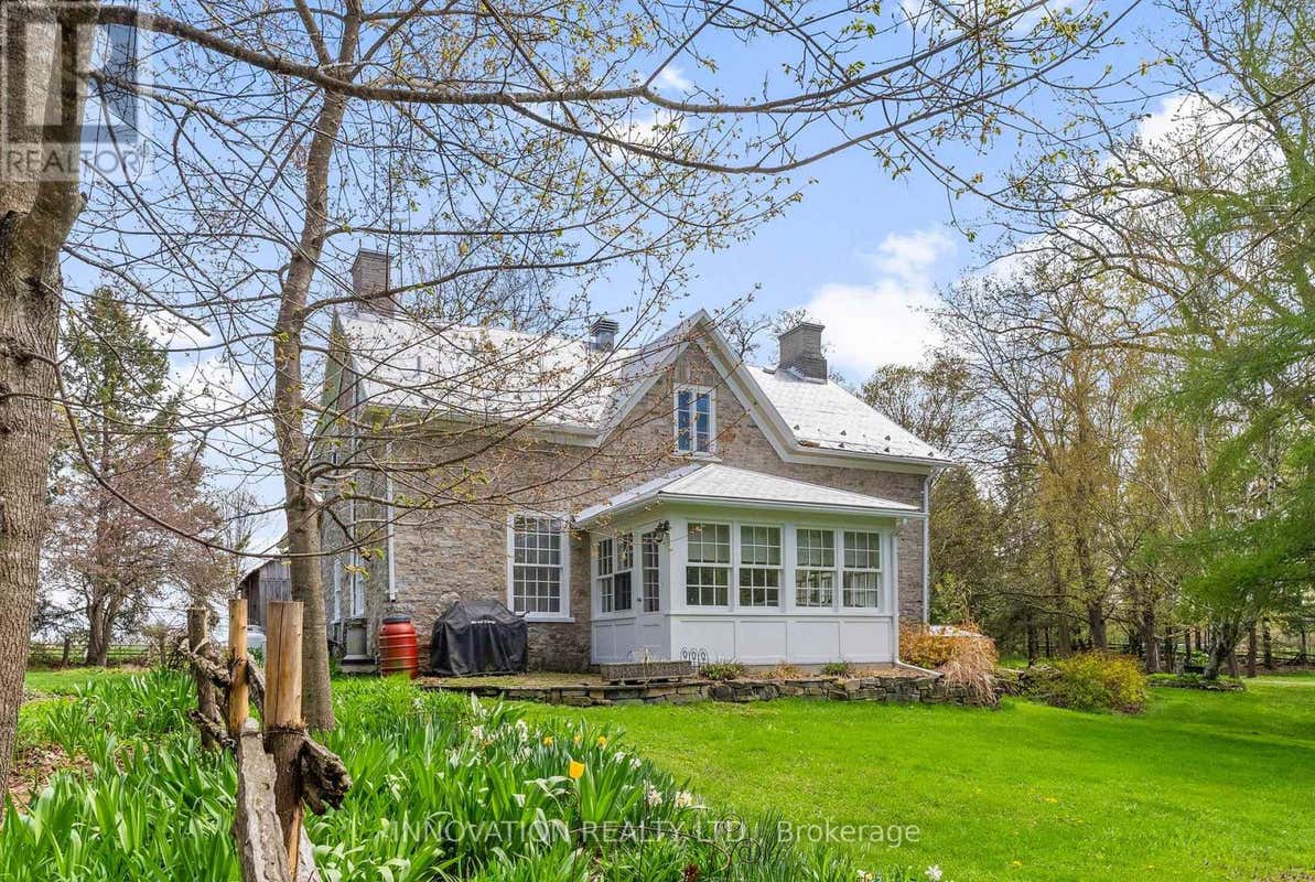 Immerse yourself in the timeless elegance of Haddon Hall Farm, a meticulously restored stone residence exuding a profound sense of history and reverence. Originally constructed c1830 and immortalized by the esteemed artist James Keirstead, this distinguished property seamlessly blends the grandeur of the past with contemporary refinement. Adorned with original stonework, antique accents, and vintage fixtures meticulously preserved to honour its authentic character, the home exudes a palpable sense of heritage and prestige. From the carefully salvaged Ottawa River flooring to the original ash beams and high-efficiency wood stove, every detail speaks to a legacy of craftsmanship and tradition. The expansive grounds, spanning 9.93 acres of picturesque landscapes, perennial gardens and charming outbuildings, offer a sanctuary for those seeking a profound connection to the past within a pastoral setting. Truly a rare gem, Haddon Hall Farm invites you to step into a world of timeless sophistication and historical significance. It is a sanctuary for those seeking a connection to the past while indulging in the tranquility of the present. 48 hour irrevocable (id:38686)