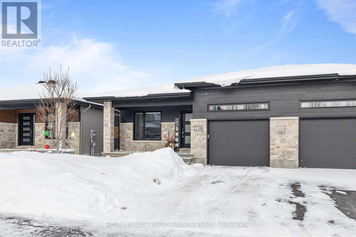 Welcome to 336 Moisson Street in Embrun - a rare offering in one of Embrun's most desirable neighbourhoods. This highly sought-after semi-detached bungalow delivers the perfect combination of privacy, space, and lifestyle, with 1,378 sq ft above grade + fully finished basement, and no rear neighbours, backing onto open fields. The thoughtfully designed main floor features 2 spacious bedrooms, 2 full bathrooms, and a functional mudroom with convenient inside access to the garage. The bright, open-concept layout seamlessly blends the living, dining, and kitchen areas, highlighted by elegant finishes, and an abundance of natural light throughout. The kitchen offers direct access to a partially covered, oversized deck - an ideal space for entertaining or relaxing while taking in the tranquil countryside backdrop. The fully finished basement significantly expands the living space, offering 2 additional bedrooms, 1 full bathroom, a generous recreation room, and a mechanical/storage area with ample room. Located in a quiet, family-friendly setting alongside Embrun's popular bike path and just minutes from parks, schools, and everyday amenities, this home offers the perfect balance of convenience and serenity. A move-in-ready opportunity with no rear neighbours in a premium location - book your private showing today! (id:38686)